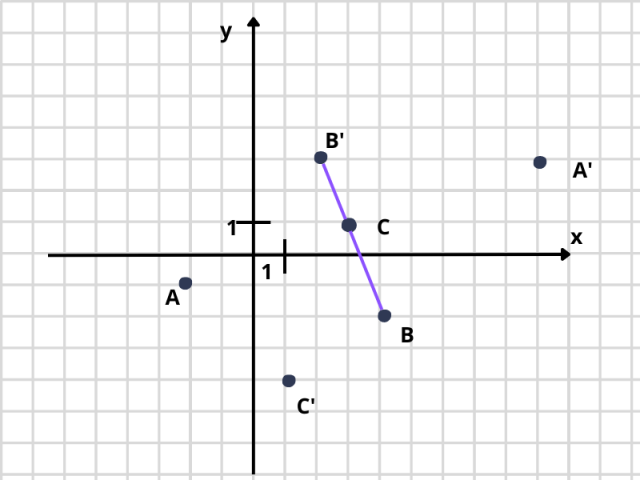 Jeśli dwa punkty A i A’ są symetryczne względem punktu S, to punkt S jest środkiem odcinka AA’.