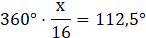 Z treści zadania wiemy, że punkty od a do p podzieliły okrąg na 16 Łuków, o takiej samej długości. Wszystkie kąty środkowe będą miały miary równe sobie, wynoszące