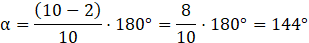 Wylicz, ile mierzy kąt wewnętrzny dziesięciokąta foremnego.