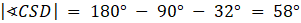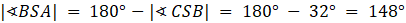 I CSB są przyległe. Suma miar tych kątów wynosi 180°, więc: