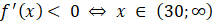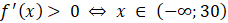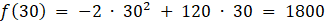 Z powyższego wynika, ze dla x = 30 funkcja f przyjmuje maksimum lokalne, które wynosi: