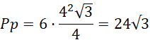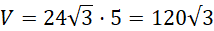 Zastosuj wzór na pole podstawy i objętość graniastosłupa prawidłowego. Zauważ, że w podstawie znajduje się sześciokąt foremny, którego pole to 6 pól trójkąta równoramiennego o boku równym długości boku sześciokąta.