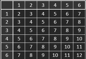W tym zadaniu musisz obliczyć prawdopodobieństwo, że suma liczb uzyskanych w pierwszym i drugim rzucie jest równa 6.