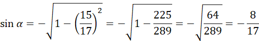Ponieważ kąt alfa jest w czwartej ćwiartce, sinus alfa będzie ujemny: