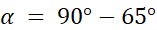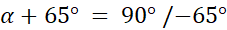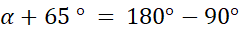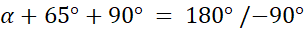 Kąt α, 65º i 90º tworzą razem kąt półpełny o mierze 180º