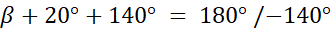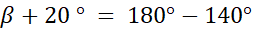 Kąt β, 20º i 140º tworzą razem kąt półpełny o mierze 180º