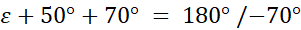 Kąt 70º, 50º i oraz kąt leżący między nimi (możesz go nazwać ε) tworzą razem kąt półpełny o mierze 180º