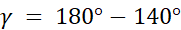 Kąt γ i 140º tworzą razem kąt półpełny o mierze 180º