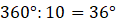 Pokrętło składa się z dziesięciu cyfr, zatem zmiana z jednej cyfry na drugą odpowiada obrotowi pokrętła o: