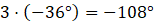 Odpowiedź: -108°, -144°, 72°