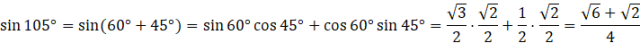Mając dane sin 105° oraz wzory funkcji trygonometrycznych na sumę i różnicę ich kątów, wyznacz podaną liczbę.