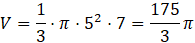 Najpierw oblicz objętość większej bryły. Wykorzystaj długości odcinków podanych w zadaniu, żeby obliczyć skalę podobieństwa figur. Oblicz objętość niezacieniowanej części bryły za pomocą relacji objętości między bryłami podobnymi. Objętość zacieniowanej bryły to różnica między dwoma wyliczonymi objętościami.