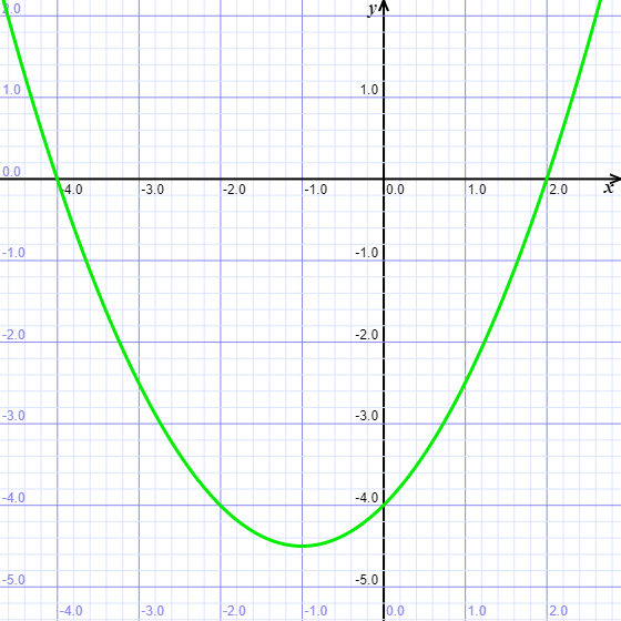 Wiedząc, że oś symetrii paraboli to x=-1, zaznacz punkt symetryczny względem tej osi do punktu (0,-4).