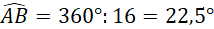 Z treści zadania wiesz, że a punkty A,B,C,…,P dzielą okrąg na 16 łuków o równej długości. Zatem:
