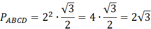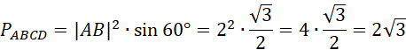 W tym zadaniu należy obliczyć pole narysowanej figury wiedząc, że |AB| =2 oraz , że figura ABCD jest rombem.