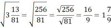 Ułamek podany w treści zadania przedstaw w postaci niewłaściwej. Pierwiastek ilorazu zamień na iloraz pierwiastków i oblicz wartość każdej liczby znajdującej się pod pierwiastkiem. Uzyskany wynik przedstaw w najprostszej postaci.