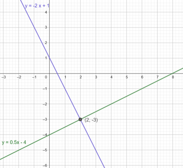 Podane równania funkcji przedstaw w postaci kierunkowej: czyli wyznacz y z równań podanych w układzie. Następnie naszkicuj wykresy obu funkcji i odczytaj współrzędne ich miejsca przecięcia.