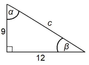 Wyznacz wartości funkcji trygonometrycznych dla kątów ostrych trójkąta prostokątnego, którego przyprostokątne mają długości 9 i 12.