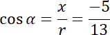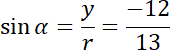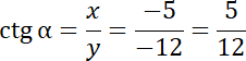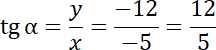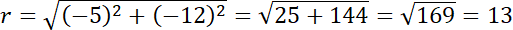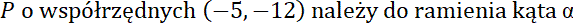 Punkt P(-5, -12) leży na ramieniu końcowym