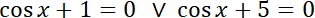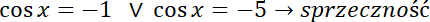 nie ma rozwiązań, ponieważ cosinus przyjmuje tylko wartości z zakresu od -1 do 1, dlatego jedynymi rozwiązaniami równania są tylko pierwiastki równania