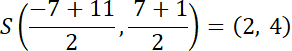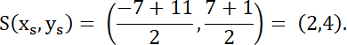 1. Oblicz współrzędne punktu S, środka odcinka AB: