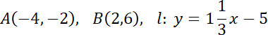 Jaka jest odległość punktów A i B od prostej l? Sprawdź, czy prosta AB jest równoległa do prostej l.