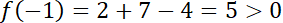 funkcja f przyjmuje dowolną wartość większą od -4 i jednocześnie mniejszą niż 5, zwłaszcza przyjmuje wartość 0.