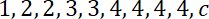 Na podstawie oznaczonych mediany, dominanty i średniej arytmetycznej oblicz wartość liczby c z zestawu.