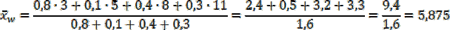 Z treści zadania wiadomo, jakie są wagi danych liczb. Skorzystaj ze wzoru na średnią ważoną i podaj jej wartość.