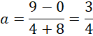 Oblicz współczynnik kierunkowy „a” prostej AB. Podstaw jeden z punktów i wylicz współczynnik b.
