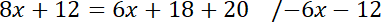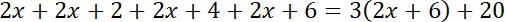 Wyznacz liczby, których suma czterech kolejnych liczb parzystych jest o 20 większa od potrojonej największej z nich.