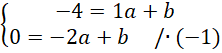Współrzędne punktów P i Q podstaw pod równanie kierunkowe funkcji liniowej. Zauważ, że powstanie układ dwóch równań z dwoma niewiadomymi. Całe drugie równanie pomnóż przez -1, aby współczynniki przy