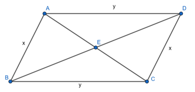 Więc punkt E jest środkiem przekątnych AC i BD, czyli dzieli je na połowy.