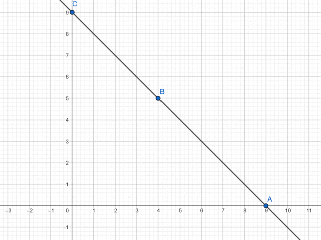 Ustal, czy punkt C(0,9) należy do prostej AB, dla której A(9,0), B(4,5).