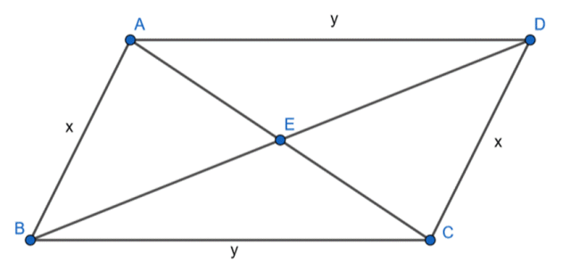 Więc punkt E jest środkiem przekątnych AC i BD, czyli dzieli je na połowy.