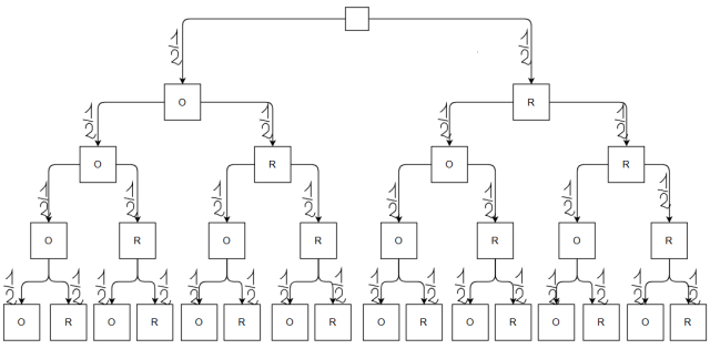 Wyznacz prawdopodobieństwo otrzymania dwóch orłów w czterokrotnym rzucie monetą sporządzając drzewo.