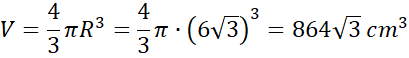 Wyznacz objętość kuli opisanej na sześcianie, którego pole powierzchni całkowitej jest równe 864 cm2.