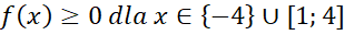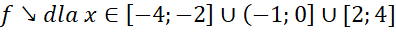 Na podstawie podanego wykresu funkcji odczytaj jego dziedzinę, zbiór wartości i przedziały monotoniczności (kiedy funkcja rośnie, maleje, jest stała) oraz zapisz dla jakich argumentów wykres funkcji znajduje się na lub nad osią OX.