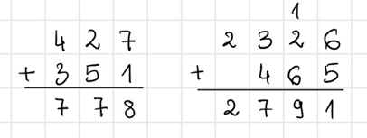 W tym zadaniu oblicz podane sumy sposobem pisemnym.