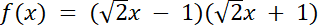 f(x) = ax2 + bx + c ⇔ f(x) = 2x2–1 ⇔ a = 2, b = 0, c = –1