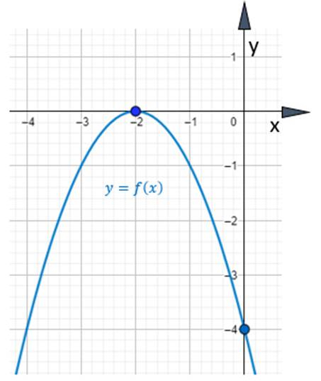–funkcja ma jedno miejsce zerowe, ponieważ wykres paraboli przecina oś OX tylko w jednym punkcie, w wierzchołku funkcji f : (–2, 0)