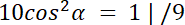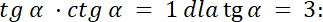 W tym zadaniu wyznacz z równania: tg α ⋅ ctg α = 1, wartość funkcji ctg α. Ze wzoru na tangens kąta wyznacz zależność między sinusem a cosinusem kąta i skorzystaj z jedynki trygonometrycznej, aby wyznaczyć dokładne wartości funkcji sinus i cosinus kąta.