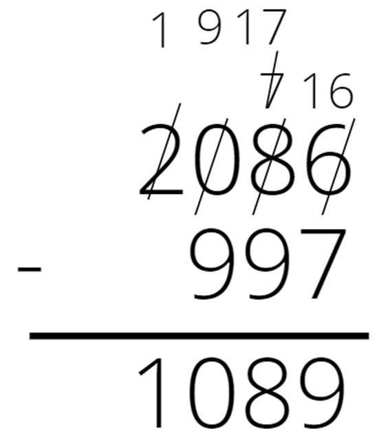 Zapisz liczby jedna pod drugą. Odejmuj kolumnami. Jeśli cyfra górna jest mniejsza od dolnej, to dodaj do niej 10, a cyfrę po lewej stronie zmniejsz o 1 i wykonaj odejmowanie na nowo powstałych liczbach. Jeśli nowo napisana liczba jest mniejsza od dolnej cyfry, to powiększ ją o 10, a następną cyfrę po lewej zmniejsz o 1. Jeśli musimy zmniejszyć o 1 cyfrę 0, to zamień ją na 9 i zmniejsz o 1 następną cyfrę po lewej stronie.