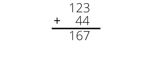 Musisz sposobem pisemnym obliczyć działanie 123 + 44.