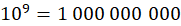 100, 1 000, 100 000, 1 000 000, 10 000 000, 1 000 000 000