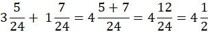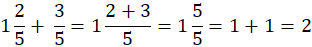 Aby dodać ułamki o takim samym mianowniku, wystarczy dodać do siebie liczniki. Całości w liczbach mieszanych dodawaj do całości.