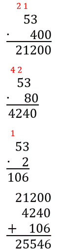 482 ꞏ 53 = 400 ꞏ 53 + 80 × 53 + 2 ꞏ 53 = 25 546.