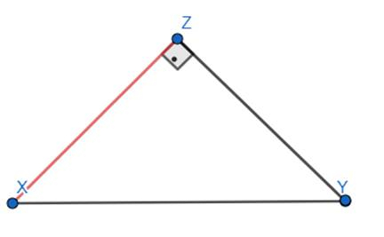 Napisz, z którego wierzchołka przeprowadzono jedną z wysokości trójkąta, która jest zaznaczona na czerwono, a następnie napisz, do którego boku jest ona prostopadła.