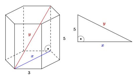 Długości przekątnej graniastosłupa oraz przekątnej jego podstawy oblicz, stosując twierdzenie Pitagorasa. W sześciokącie foremnym, będącym podstawą graniastosłupa, długość jego najdłuższej przekątnej jest dwa razy dłuższa od jego boku.