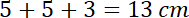 c) Dwa boki trójkąta mają po 5 cm, a trzeci jest od każdego z nich o 2 cm krótszy. Oblicz obwód tego trójkąta.